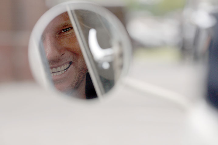 Schauspieler Peter Lohmeyer mit seinem VW Caddy